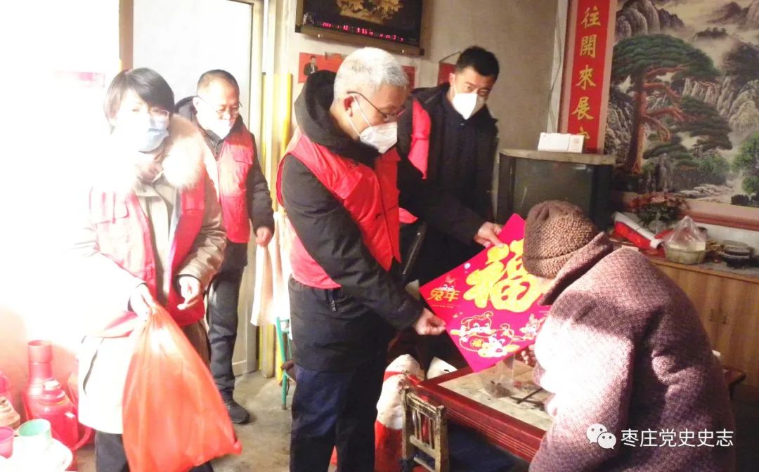????新春慰問添年味,歲寒情深暖人心。為弘揚(yáng)社會(huì)主義核心價(jià)值觀和中華優(yōu)秀傳統(tǒng)文化,喜迎兔年新春,1月18—19日,市委黨史研究院先后赴滕州市東沙河街道張街村、薛城區(qū)陶莊鎮(zhèn)奚村開展“情暖冬日 迎春送?!弊咴L慰問活動(dòng)。
