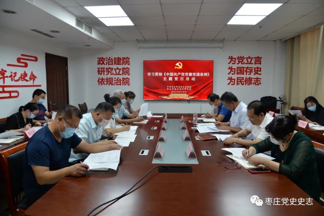 一面面旗幟引領(lǐng),一枚枚黨徽導(dǎo)航,一代代薪火相傳。這場(chǎng)覆蓋全院黨員干部和非黨群眾的知識(shí)競(jìng)賽,是繼院領(lǐng)導(dǎo)班子理論學(xué)習(xí)中心組學(xué)習(xí)研討、到鐵道游擊隊(duì)紀(jì)念館接受黨性教育、赴基層聯(lián)系點(diǎn)開展調(diào)研后,市委黨史研究院推進(jìn)黨史學(xué)習(xí)教育常態(tài)化長(zhǎng)效化的又一有力抓手。張思春同志強(qiáng)調(diào),黨徽黨旗知識(shí)是黨史學(xué)習(xí)教育的重要內(nèi)容。黨史史志系統(tǒng)的黨員干部,要把學(xué)習(xí)貫徹《條例》和推動(dòng)黨史學(xué)習(xí)教育常態(tài)化長(zhǎng)效化結(jié)合起來(lái),以黨的旗幟為旗幟、以黨的方向?yàn)榉较?、以黨的意志為意志,以黨史史志事業(yè)的高質(zhì)量發(fā)展為黨徽增光、為黨旗添彩。