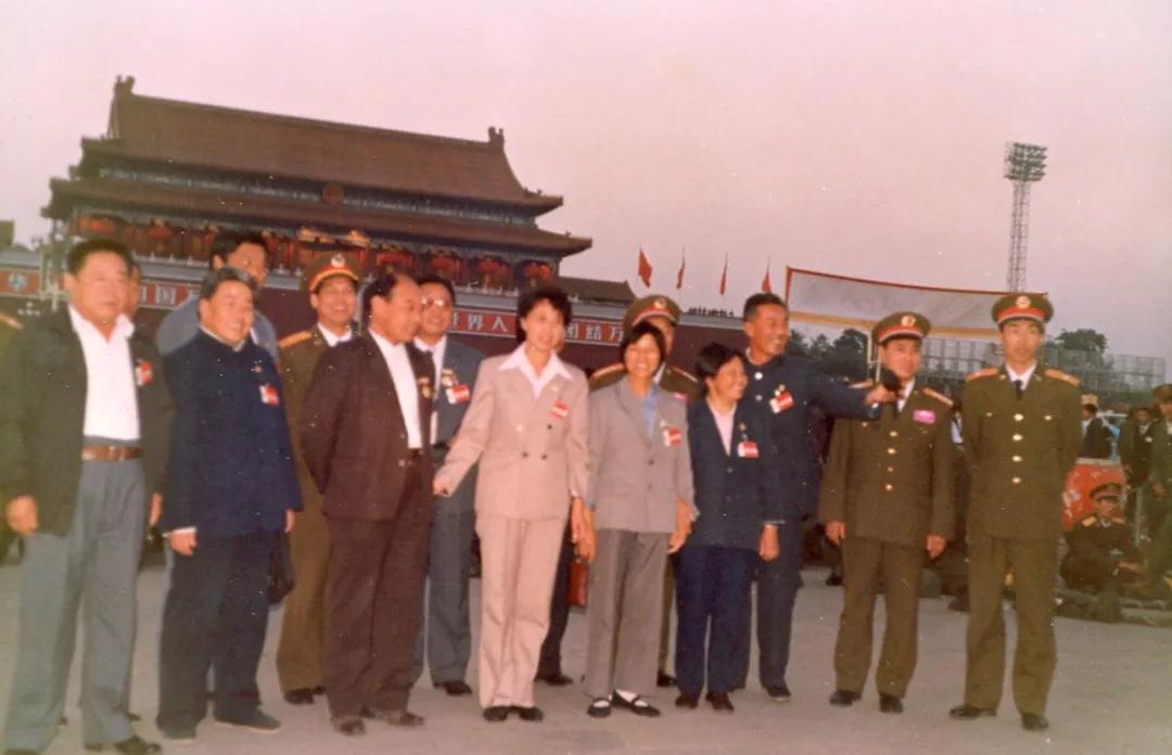 1989年,王瑞(前排左三)與全國勞模代表在天安門廣場。