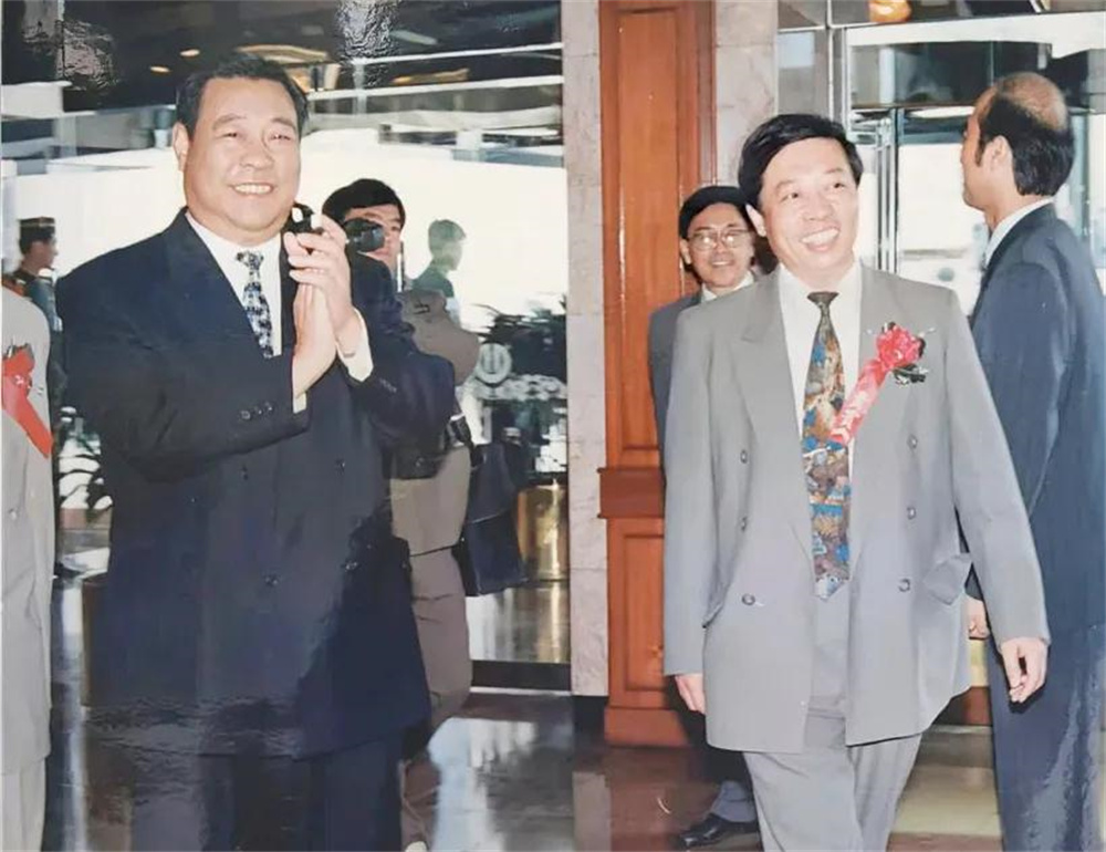 1994年,時(shí)任山東省省長李春亭(左一)參加華眾紙業(yè)引進(jìn)外資簽約儀式,吳承鑒(右一,著淺西服者)陪同。