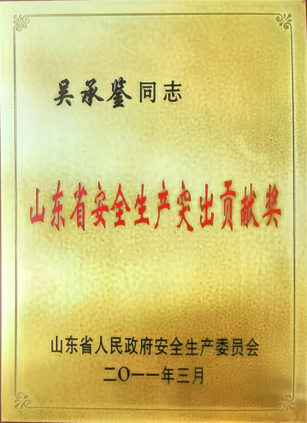 2011年,吳承鑒被山東省人民政府安委會(huì)授予“山東省安全生產(chǎn)突出貢獻(xiàn)獎(jiǎng)”。