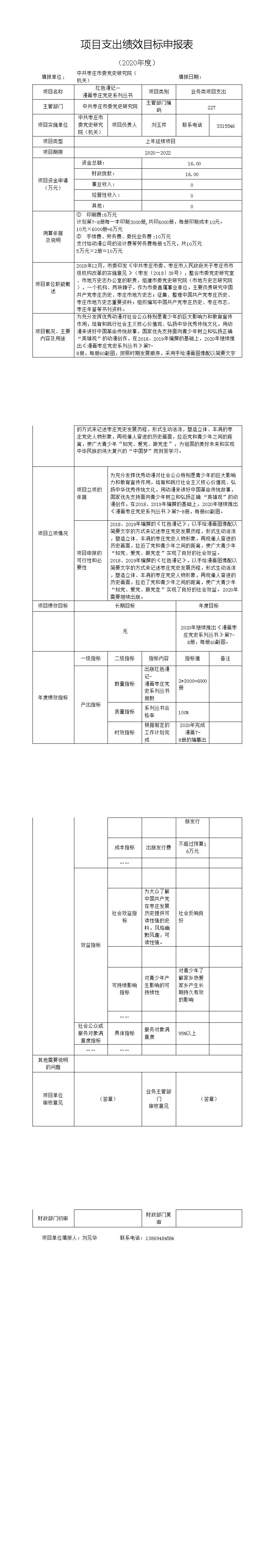 中共棗莊市委黨史研究院紅色漫記—漫畫棗莊黨史系列叢書項目績效申報表